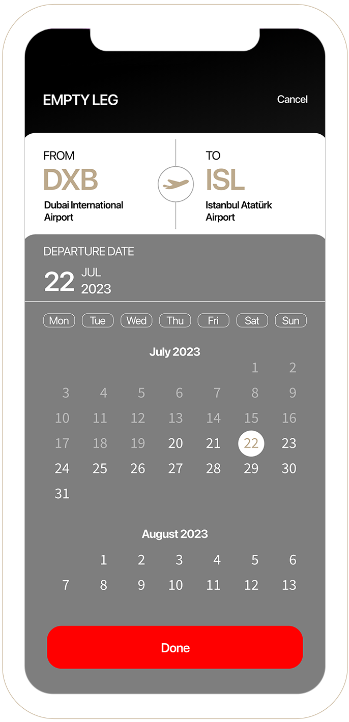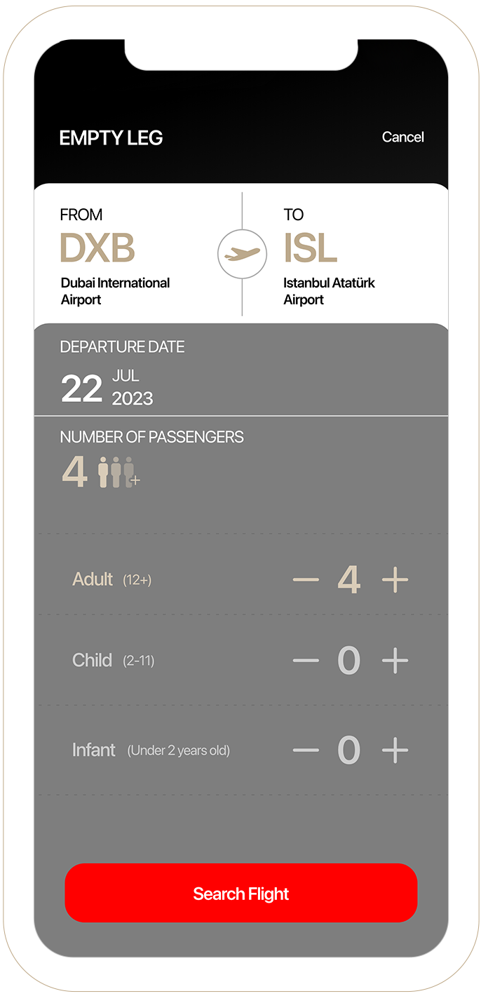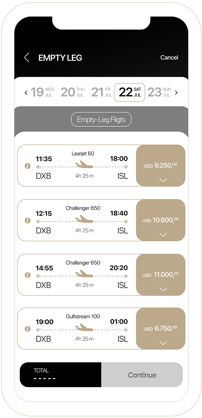 Avio-Leg is a specialized platform within the Avionex ecosystem, providing travelers with access to discounted private jet flights. Rates for private jet flights vary by destination, with empty-leg flights accounting for 30% to 60% of the available options.
